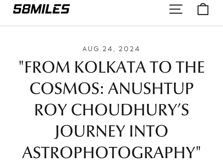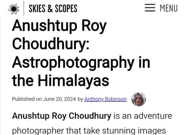 Anushtup Roy Choudhury, the visionary founder of Light N Lens, will be the esteemed mentor for Astrophotography in our upcoming workshops. Anushtup has garnered extensive accolades on both national and international platforms, including the prestigious Astronomy Magazine, NASA's Astronomy Picture of the Day (APOD), , Natgeo Traveller India, Amateur Astronomy Picture of the Day (AAPOD2) and many more. His work has been widely recognized, and his insightful interviews have been published in international media outlets.